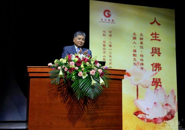 7月24日下午,我公司部分同事作為旭日集團(tuán)駐石企業(yè)員工有幸參與了《生活禪夏令營(yíng)二十屆紀(jì)念大會(huì)》的部分活動(dòng)。此次活動(dòng)是由河北省佛教協(xié)會(huì)主辦、趙縣柏林禪寺承辦、《禪》雜志社協(xié)辦。下午14:00一部關(guān)于禪宗人物的黃梅劇《傳燈》在人民會(huì)堂一層大廳拉開序幕,該劇再現(xiàn)了黃梅禪宗四祖?zhèn)魑遄?、五祖?zhèn)髁娴膫髌婀适??;趾甏髿獾膱?chǎng)面、清新自然的風(fēng)格、感人的故事情節(jié)和演員們出彩的表演讓現(xiàn)場(chǎng)不時(shí)爆發(fā)出熱烈的掌聲。在這之后現(xiàn)場(chǎng)居士、夏令營(yíng)員,及企業(yè)員工近1000名觀眾又有幸聆聽(tīng)了楊先生的《人生與佛學(xué)》講座,講座過(guò)程中楊先生與現(xiàn)場(chǎng)觀眾進(jìn)行了深入的交流與互動(dòng)。