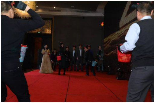 聯(lián)歡會不僅有精彩的表演,還有歡樂的游戲~領(lǐng)導(dǎo)們上臺“活躍筋骨”,只有通過默契的考驗,才能把福鼠帶回家~現(xiàn)場歡笑連連,可愛的招財舞更是贏得掌聲陣陣……
