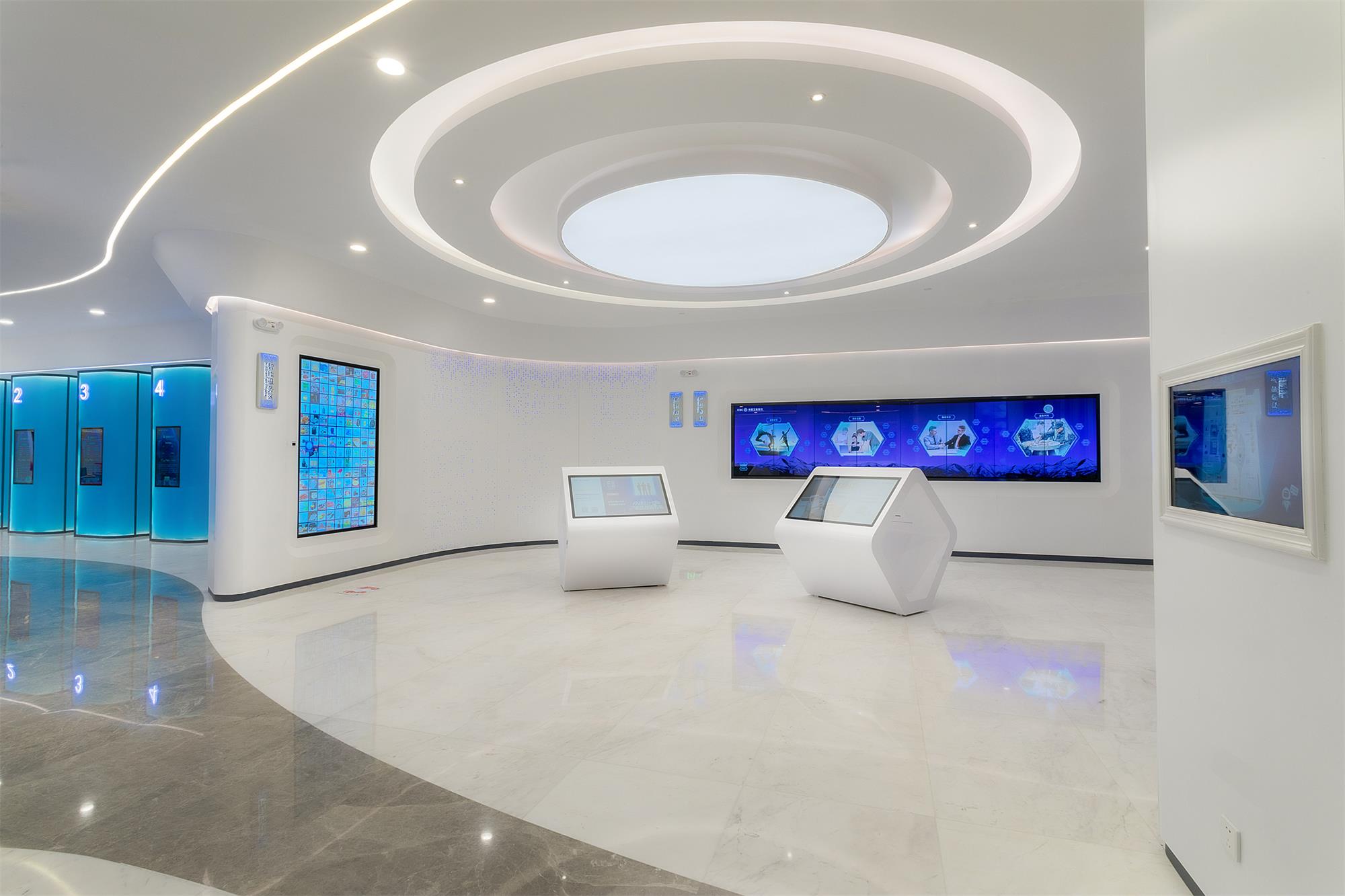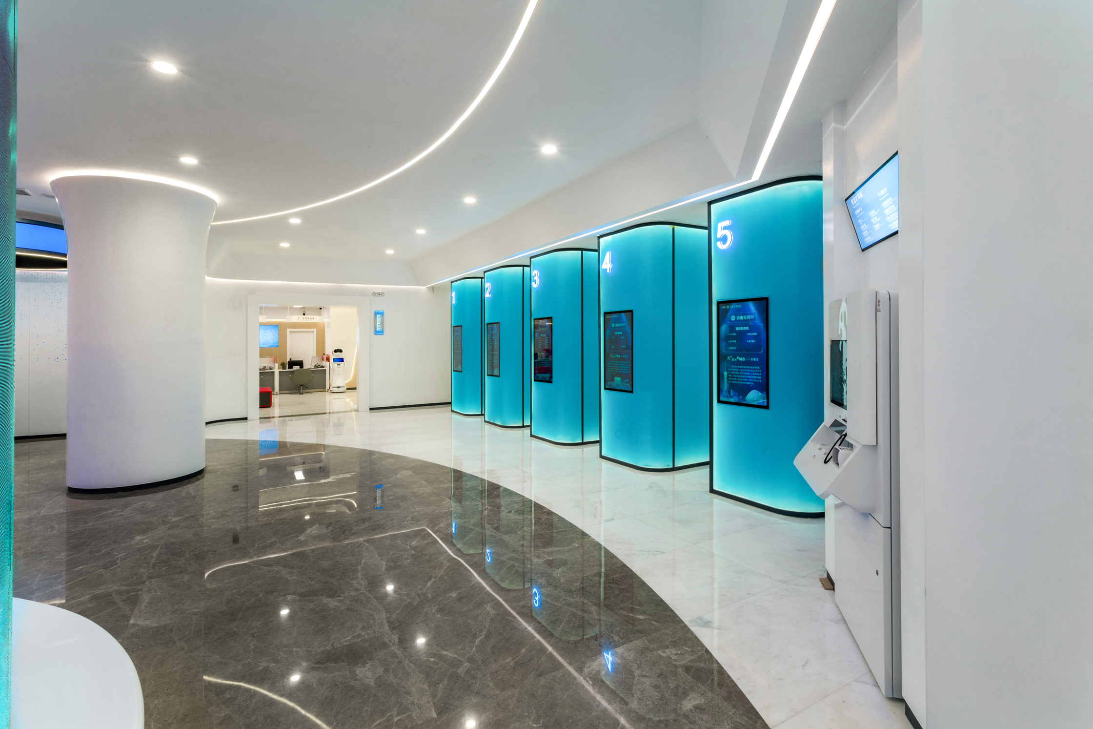 智慧金融:用戶可通過(guò)“互動(dòng)商城”、“智慧樹(shù)”等,實(shí)現(xiàn)融e購(gòu)、e生活、銀行卡及金融超市產(chǎn)品掃碼購(gòu)買(mǎi);數(shù)字同屏可互投展示熱銷產(chǎn)品,實(shí)現(xiàn)對(duì)公、個(gè)人等綜合業(yè)務(wù)辦理;遠(yuǎn)程專家支持,提升服務(wù)效能;智能貨柜,使線上預(yù)約產(chǎn)品客戶自助領(lǐng)取全面替代柜面交付,提升客戶體驗(yàn)。