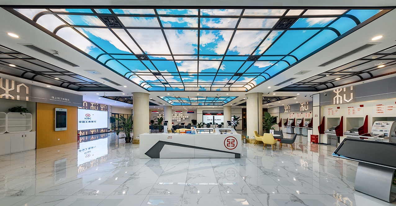 中國(guó)工商銀行和平支行坐落于石家莊CBD中心商務(wù)區(qū),是一個(gè)全新的智能化網(wǎng)點(diǎn)。該網(wǎng)點(diǎn)圍繞“智慧廳堂”建設(shè),室內(nèi)燈光、空調(diào)、照明等采用智能環(huán)控系統(tǒng),玻璃隔斷采用可智能調(diào)節(jié)通透度的霧化玻璃,打造出一個(gè)科技、智能、舒適的現(xiàn)代化銀行營(yíng)業(yè)場(chǎng)所。