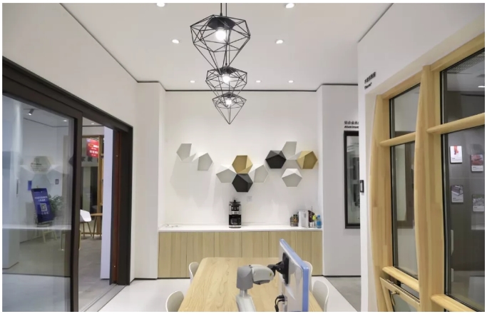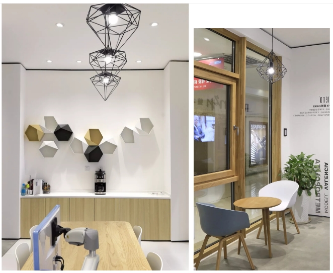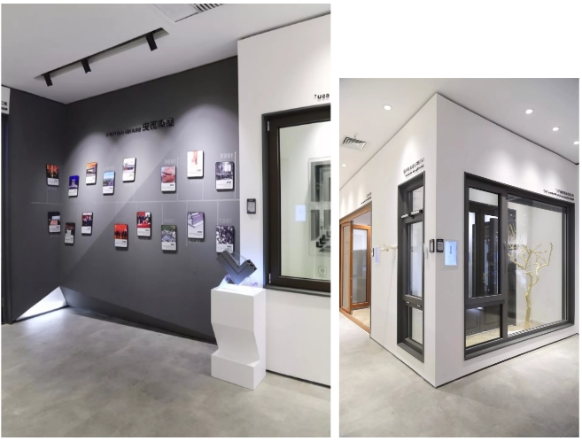 本案以類(lèi)似鉆石斜切面的手法,對(duì)空間進(jìn)行削切,形成嶄新的立面效果。以此來(lái)襯托出我們的門(mén)窗產(chǎn)品。是追求精致品質(zhì)的,我們是不同于其他品牌的、我們是懷揣著鉆石般的心做產(chǎn)品的。