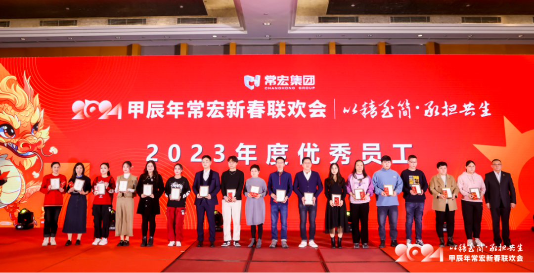 聯(lián)歡會現(xiàn)場,對常宏2023年度優(yōu)秀員工、杰出團隊、工齡獎、榮休獎等獎項進行了表彰和頒獎,這是對常宏人辛勤付出的認可和褒獎,更是對常宏人今后更加努力拼搏的鼓勵!