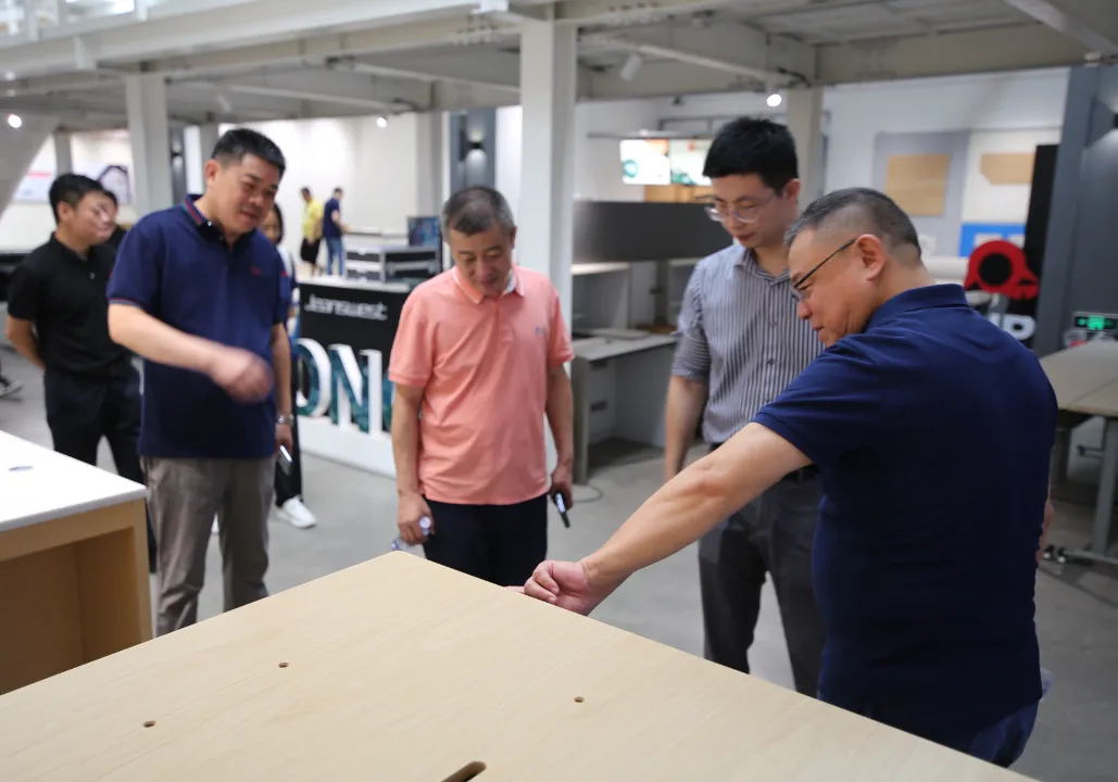 金意陶集團(tuán)副總經(jīng)理、工程事業(yè)部總經(jīng)理李勤一行還參觀了常宏研究院研發(fā)中心、產(chǎn)業(yè)園展示中心、生產(chǎn)車間等,了解了常宏在智能化、裝配式技術(shù)以及智能化和工業(yè)化結(jié)合等方面的研發(fā)和應(yīng)用,雙方就行業(yè)現(xiàn)狀和發(fā)展方向以及今后聯(lián)合研發(fā)、合作共贏等方面進(jìn)行了探討。