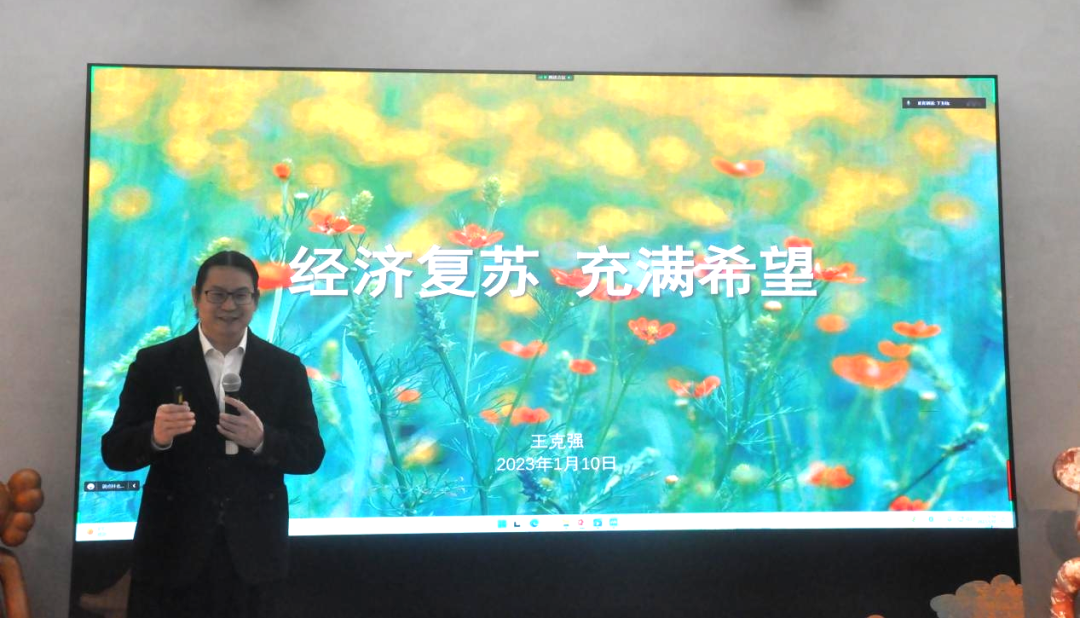 本次會議的承辦方、分會副會長、上海邑通董事長王克強(qiáng)致辭,他首先對能夠承辦店裝分會成立以來線下的第一次會長辦公會擴(kuò)大會議表示榮幸和感謝,并以《經(jīng)濟(jì)復(fù)蘇 充滿希望》為主題作了行業(yè)分析報告,通過靚麗、多彩的界面?zhèn)鬟f給大家未來希望和信心。他從消費(fèi)者疫情后消費(fèi)信心的提升、高端化勢頭的延續(xù)、各線城市實際的消費(fèi)變化、產(chǎn)品為王、本土企業(yè)正在贏得市場這五方面給大家分析了國際國內(nèi)社會的宏觀環(huán)境和消費(fèi)的趨勢,商業(yè)店裝行業(yè)的發(fā)展未來可期,點燃了會員企業(yè)對未來發(fā)展的信心和激情。