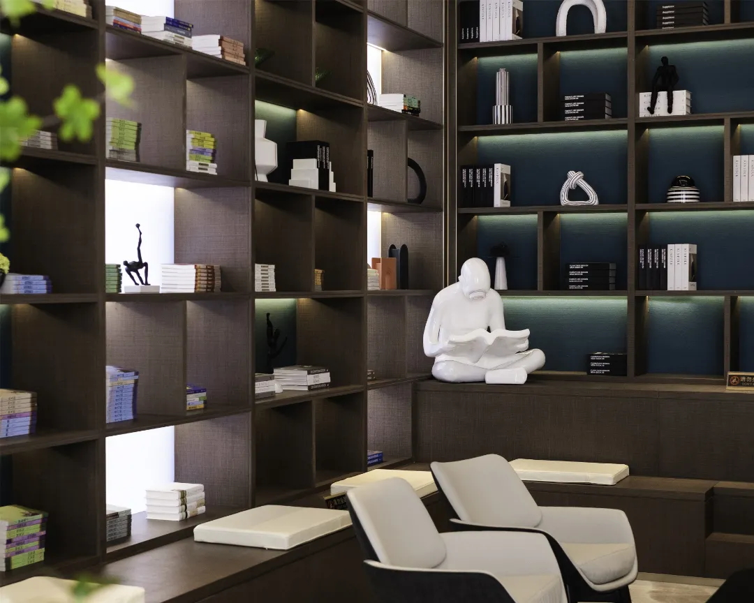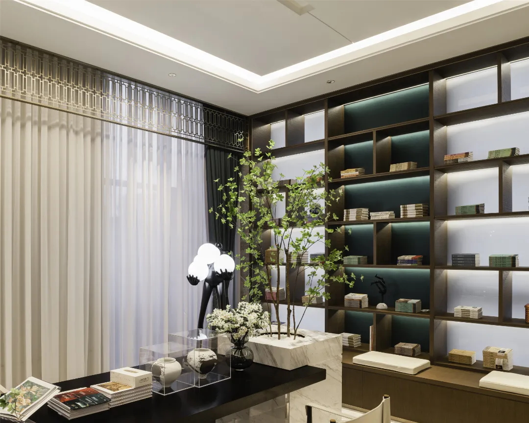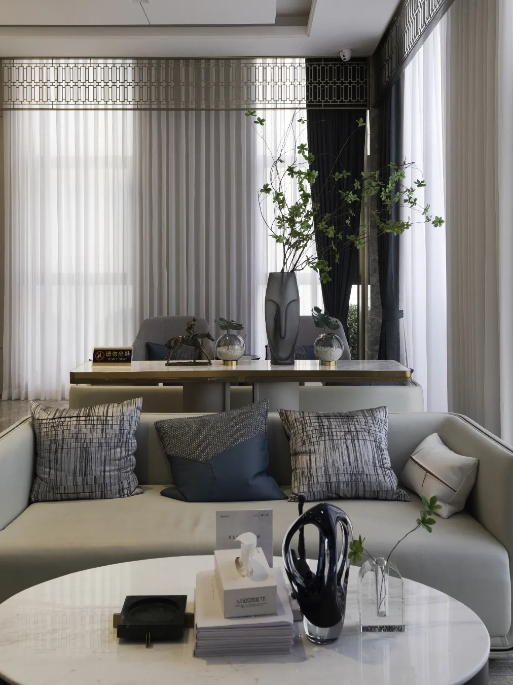 該項(xiàng)目設(shè)計(jì)為新中式現(xiàn)代風(fēng)格,將中式元素與現(xiàn)代材質(zhì)巧妙兼柔進(jìn)行布置,總體布局上對(duì)稱(chēng)均衡,端正穩(wěn)健,在裝飾細(xì)節(jié)上富于變化,充分體現(xiàn)出中國(guó)傳統(tǒng)美學(xué)精神。整體空間簡(jiǎn)潔大方,相得益彰。