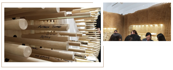 無(wú)數(shù)的小木棒暗喻著落地工作的細(xì)致和縝密,來(lái)不得半點(diǎn)馬虎,每跟木棒都可以簽上自己的名字,說(shuō)明每一個(gè)項(xiàng)目都有著無(wú)數(shù)的默默無(wú)聞的建設(shè)者。最后來(lái)個(gè)合影打個(gè)卡,呵呵!