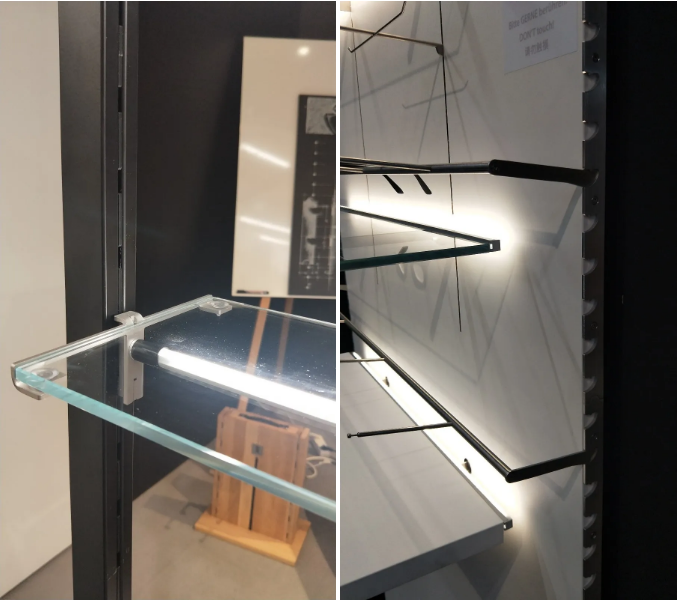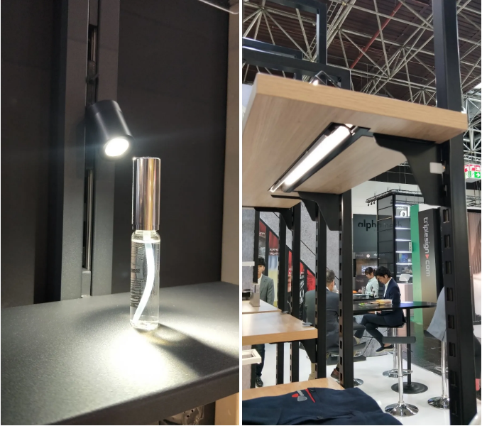 2、道具與照明結(jié)合緊密,進(jìn)行了一體化設(shè)計(jì)。無論是線條燈還是射燈,都采用獨(dú)立線路,觸點(diǎn)式接觸。