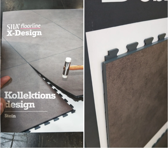 下面的兩種地面材質(zhì)適合對(duì)現(xiàn)有零售賣場(chǎng)地面進(jìn)行改造升級(jí),干法施工、方便快捷。每塊板的相鄰兩個(gè)直角邊為“卯”,另外兩個(gè)邊為“榫”,這樣的承插設(shè)計(jì)的好處是既方便人員操作施工,又可以在其中某一塊板件損壞需更換的時(shí)候方便取下來。這一點(diǎn)跟國(guó)內(nèi)許多快裝地板相比有著獨(dú)特的優(yōu)勢(shì),值得借鑒。