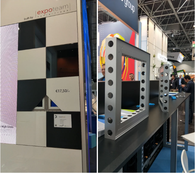 還有一款是今年新推出的墻板,厚度80毫米。面板可以是拉布,也可以是硬質(zhì)板,同時(shí)可以集成各類顯示設(shè)備和燈箱。