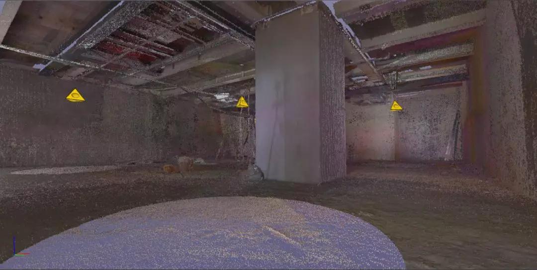 1、項目進場前進行3D掃描,快速獲取真實準確的場地信息。該場地原始黑暗無窗,用傳統(tǒng)測量方案基本無法完成。而激光掃描有獨特優(yōu)勢,獲取的點云文件為后續(xù)建模提供數(shù)據(jù)支持。