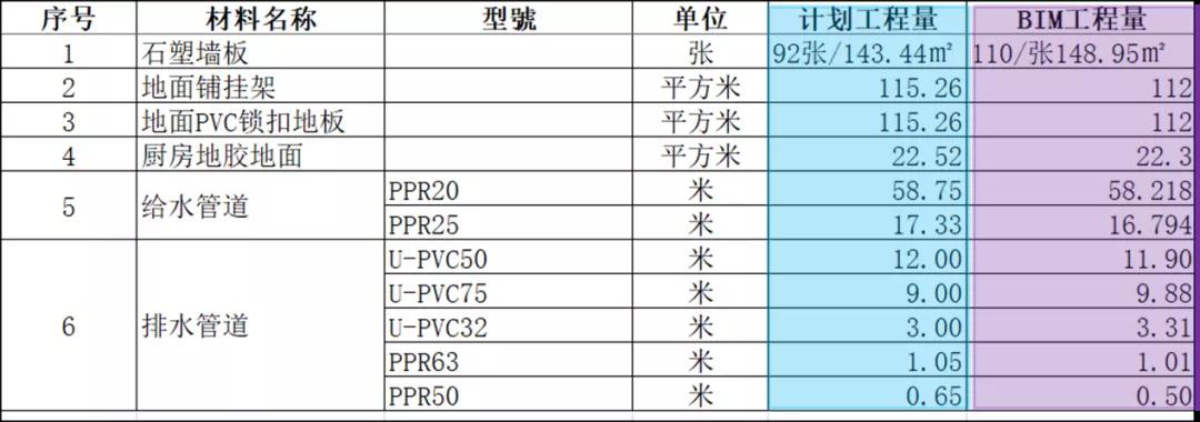 5、工程量的統(tǒng)計。通過BIM的模型對各種材料量的統(tǒng)計可以快速生成報價,同時指導實際的材料使用量。
