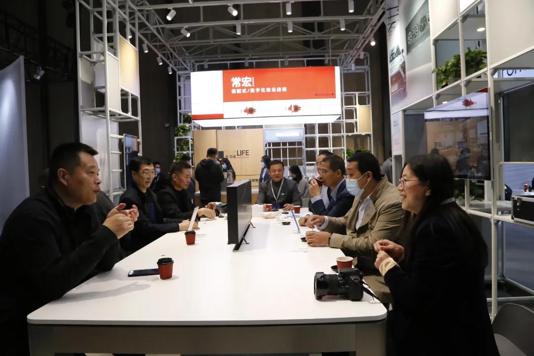 常宏如約在雄安主會(huì)場(chǎng)E3展位亮相,接待各界朋友,政府領(lǐng)導(dǎo)、與會(huì)嘉賓、高校學(xué)者、藝術(shù)工作者等嘉賓前來參觀、指導(dǎo)工作。此次常宏展位整體運(yùn)用數(shù)字化設(shè)計(jì)(BIM)、裝配式技術(shù)建造,節(jié)約資源(材料可重復(fù)利用回收),綠色、環(huán)保、低碳,大大得縮短了工期。此外還展示了智慧云柜,商業(yè)空間、家居智慧環(huán)控系統(tǒng)等產(chǎn)品,吸引了來往的觀眾駐足。