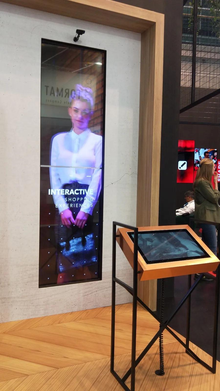 下面是荷蘭的一家公司整合的零售店智能產(chǎn)品,雖然在技術(shù)層面上不比國內(nèi)先進(jìn)多少,但是內(nèi)容設(shè)計(jì)上還是我們值得借鑒的。前面的一個(gè)屏幕供顧客選擇衣服并提供各種搭配,大屏幕上同時(shí)出現(xiàn)你做出的選擇和模特穿著你所選衣服的靚麗外表。當(dāng)您還在欣賞自己選擇的衣服是否合適時(shí),會(huì)出現(xiàn)一個(gè)跟模特一樣的真人。也許這就是西方特有的幽默吧。